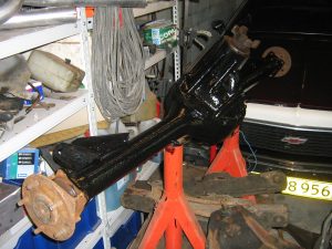 | Arbejdet går jo videre når man får nye materialer til Impalaen. De nye stumper kom på og det begynder at ligne noget fornuftigt. Fjedre, støddæmper, bøsninger, og kuglelejer blev skruet på Impalaen. |