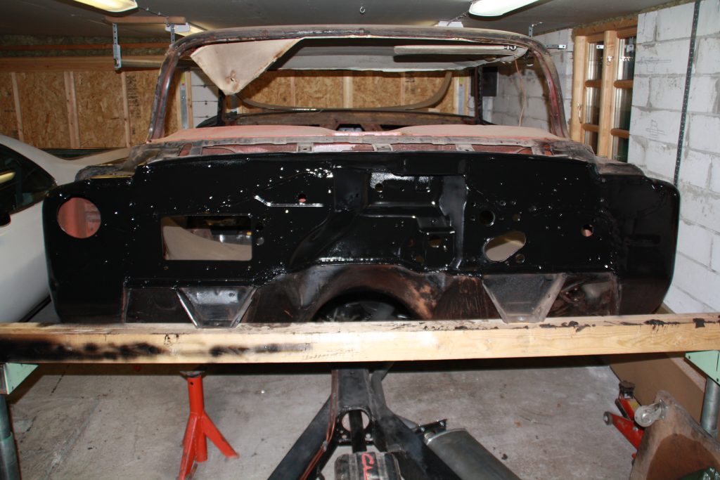 | 28.05.2009 Så sker der noget med impalaen igen. Efter at jeg har fået næsten hele bilen hjem i min nye garage, sker der sku noget igen. Rammen er blevet færdig og bagtøj er slebet ned og fået rust primer og Hammerlak. der er bestilt for ca. 5.000 kr. stumper til nye bøsninger osv. |