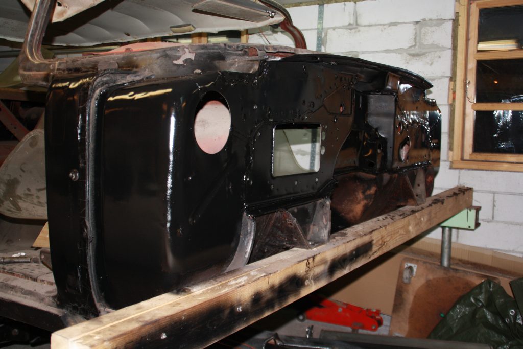 | 07.06.2009 Afmontering af de gamle bøsninger var ikke så let, indtil jeg fandt ud af hvordan det var nemmest at få dem af. En varmepistol på i ca 5 min. og derefter skulle de bare slås ud, uden at bruge for meget energi på det. Så nu mangler jeg kun at male dem med primer og hammerlack, og montere de nye bøsninger som ikke er kommet endnu |